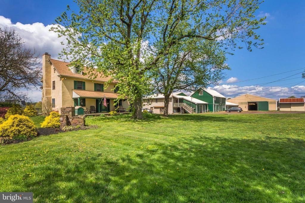 This classic Bucks County farmhouse estate offers a rare opportunity to own a fully equipped equestrian property set on nearly 13 picturesque acres in Hilltown Township. Designed with the serious horse enthusiast in mind, the property seamlessly combines a turnkey training facility with the timeless charm of a circa-1780 farmhouse—creating an ideal setting for both horse and rider. At the heart of the farm is a 60' x 120' indoor riding arena, thoughtfully updated with masonry sand and fiber footing for optimal performance. Complementing the indoor is a 100' x 200' outdoor arena with well-draining footing, providing year-round versatility for training and riding. The well-appointed barn features 23 horse stalls, 4 pony stalls, and a two-stall shed row, along with two tack rooms, a kitchenette, and a bathroom for convenience. Eleven fenced pastures with solar-powered electric fencing allow for efficient rotation and turnout, while a round pen and hot walker support a complete training program. A private trail encircles the pastures, offering the ease of riding directly on your own property. Above the barn, two beautifully updated apartments—one one-bedroom and one two-bedroom—provide excellent options for staff housing, guest accommodations, or rental income. One includes an enclosed porch, while the other offers a flexible bonus room. The farmhouse itself overlooks the grounds, offering peaceful views of the pastures and daily horse activity. A welcoming wraparound front porch sets the tone, while inside, the home blends historic character with modern comfort. Wide-plank yellow pine floors, deep window sills, and exposed beams reflect its heritage, while the thoughtfully designed layout supports today’s lifestyle. The living room features a striking stone fireplace with wood insert, and the dining room includes a built-in mirrored serving cabinet and generous storage. A dramatic floor-to-ceiling stone wall anchors the kitchen, which is equipped with cherry cabinetry, granite countertops, stainless steel appliances, and a bright breakfast area. The family room, with its raised-hearth stone fireplace, opens to a private 530-square-foot two-tiered deck—perfect for relaxing or entertaining while overlooking the pastures. A mudroom with laundry, located on the barn side of the home, provides a practical transition from stable to house. Upstairs, the primary suite offers a walk-in closet and a spacious bath with dual vanities, Jacuzzi tub, and separate shower. Three additional bedrooms and a full bath complete the second floor, while a walk-up attic offers expansion potential. Additional highlights include a new roof (May 2024), updated HVAC systems (2022/2023), a newer oil tank and heater flue, and an electronic dog fence encompassing approximately six acres. Beyond equestrian use, the indoor arena can easily accommodate storage for equipment, vehicles, or recreational boats. An adjacent equipment shed and a heated/cooled 1.5-car garage with 220 three-phase electric, high ceilings, and bright LED lighting make this property equally appealing for hobbyists or small business use. Ideally located in the heart of Bucks County—just 5 miles from Dublin, approximately 18 miles from the Bucks County Horse Park, 35 miles from Philadelphia, and 80 miles from New York City—this property offers the perfect balance of accessibility and a private country setting. Act 319 preferential assessment, which may allow for a one-acre subdivision, offering potential for a second homesite (buyer to verify). 24-hour notice required.